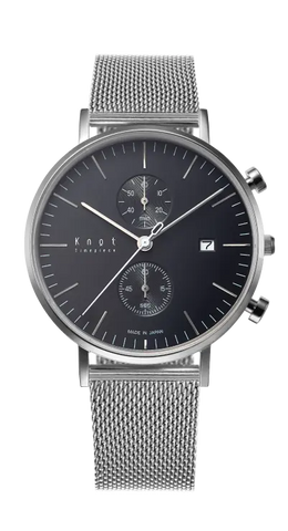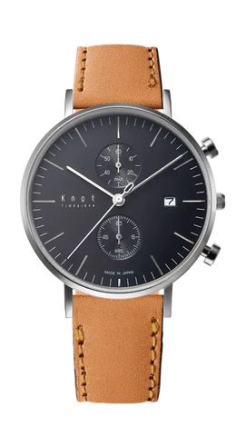 The simple bar index of the CC-39, and the CC-39 ARABIC with its easy-to-read Arabic numerals and an inner ring featuring a tachymeter scale. Two versions of the Chronograph model – a Knot classic ever since the company’s inception.