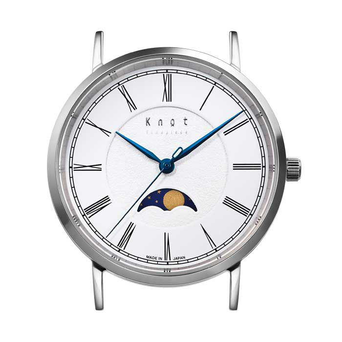 The moon phase mechanism has long been a popular “complication” in mechanical watches. With this quartz watch model, you can see the current phase of the moon, such as a full or crescent moon, by checking the rotating moon phase plate. The mysterious and romantic beauty of the moon’s changing phases give the watch face an added touch of splendor. The design of the Classic Moon Phase follows in the footsteps of the simple, slim form of Knot’s popular Classic series, available as a design pair in two sizes, 38mm and 34mm.