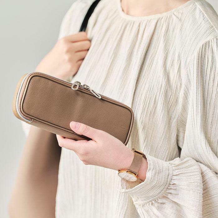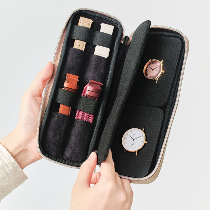 The watch case is the ideal solution for storing multiple Knot watches and taking them on your travels. This is a Himeji Leather Watch Case. Himeji leather is vivid in color, highly durable and scratch resistant, and alters very little with age.